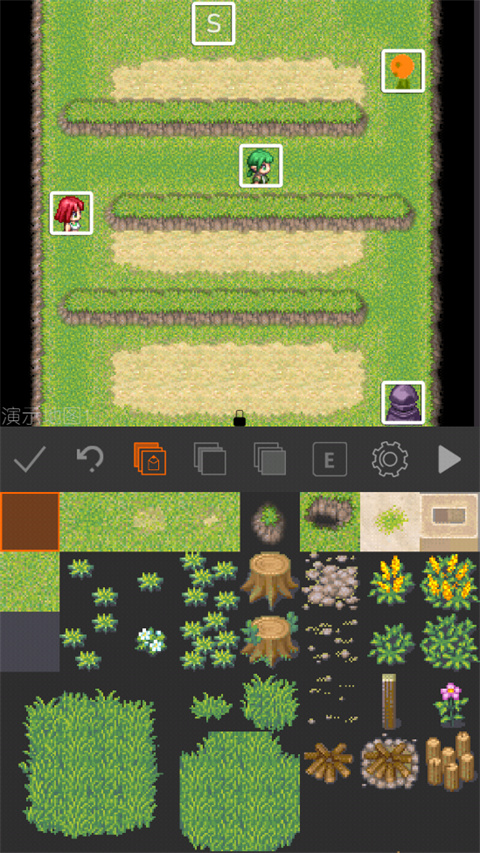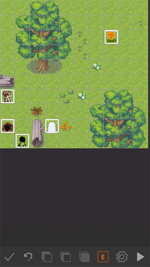 3、编辑器操作简单,手指点击挑选素材,按照个人的想法放置花草树木,轻松布置地图,而且角色的职业、属性也能随心设计。