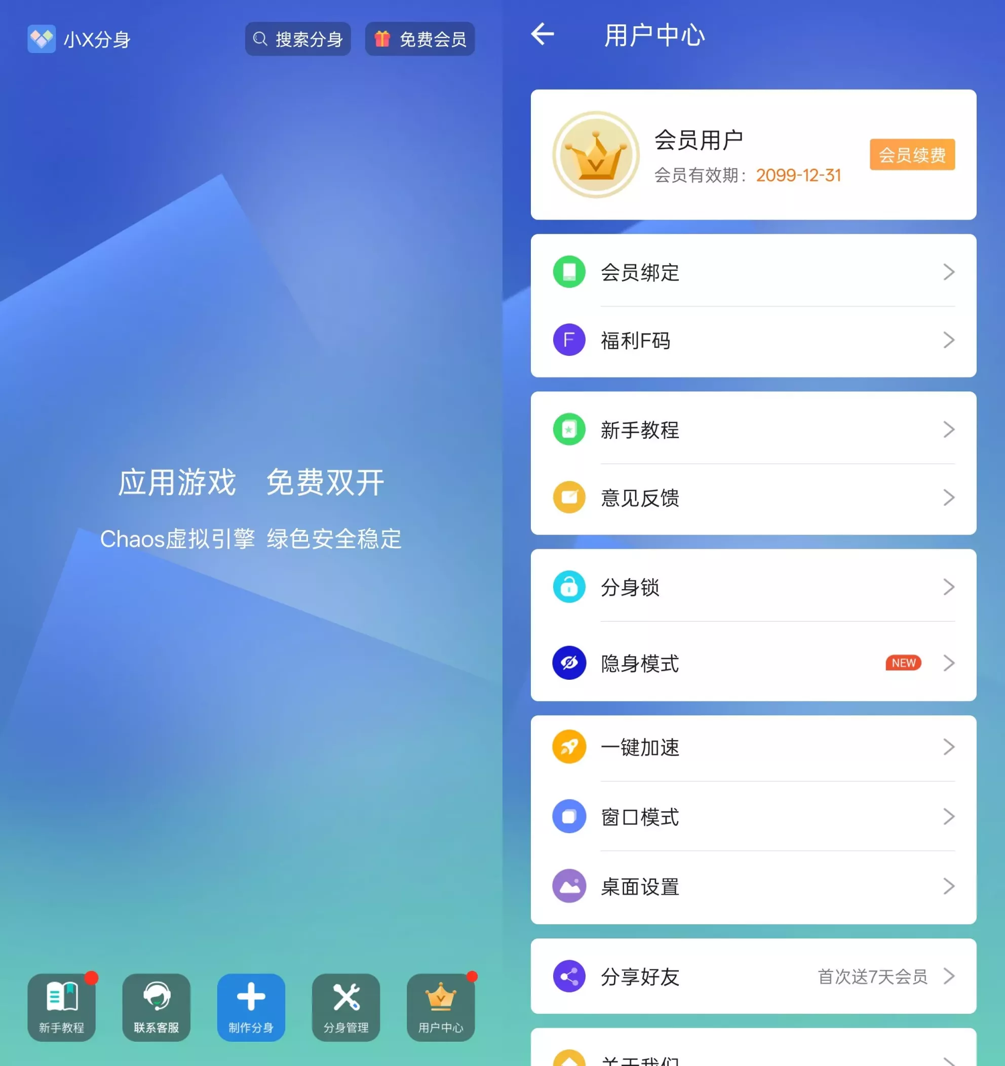 小X分身是一款功能强大、安全可靠的手机应用分身工具,通过先进的虚拟化技术,帮助用户轻松实现多账号同时在线,提升生活和工作的便利性。支持所有应用和游戏的分身功能,旨在解决用户多账号同时使用的需求。