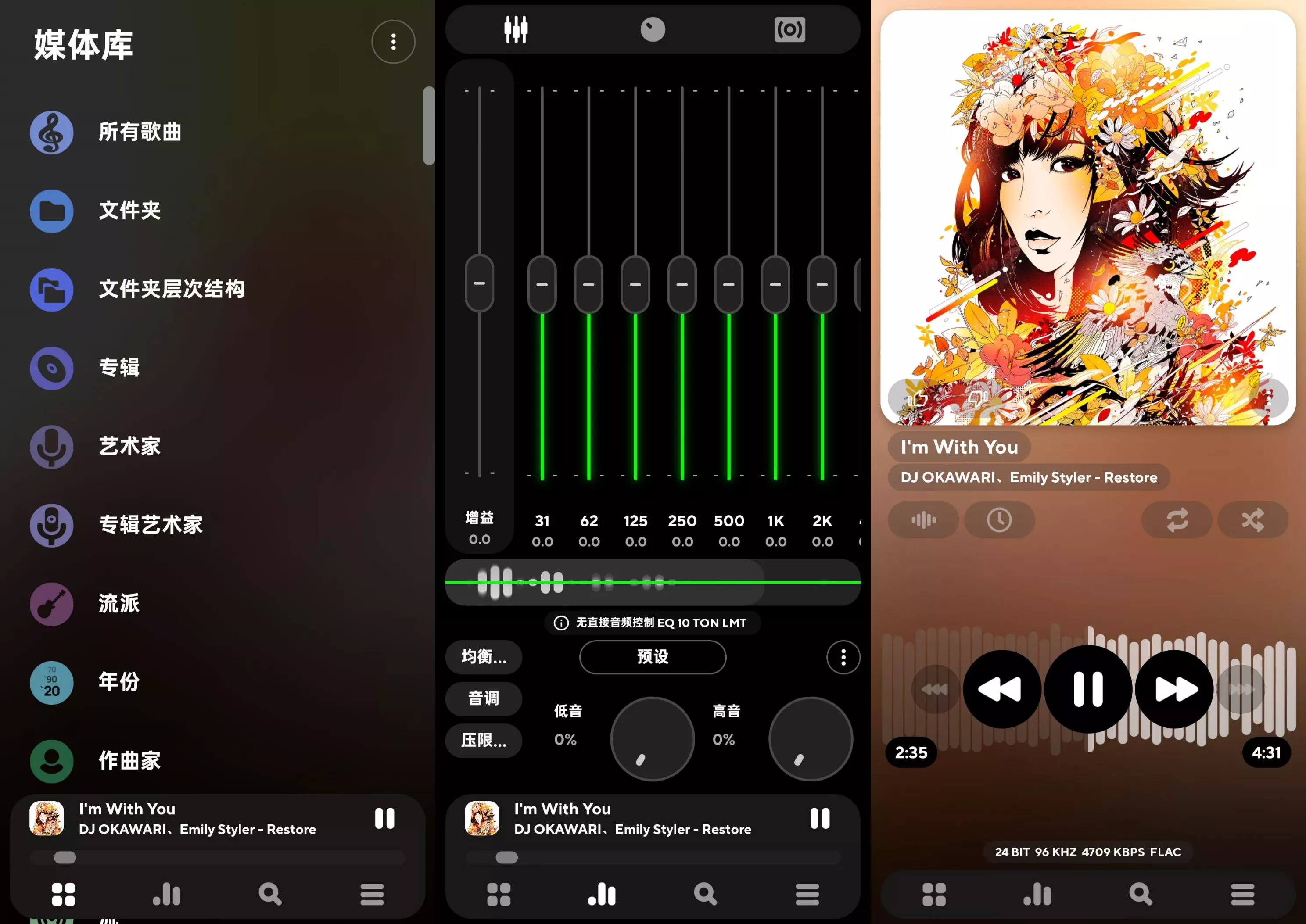 Poweramp采用动态Material You设计语言,界面随系统主题自动变换色调,并支持用户上传专辑封面生成3D动态音波壁纸。在交互层面,软件独创“三指滑动”快捷操作:
