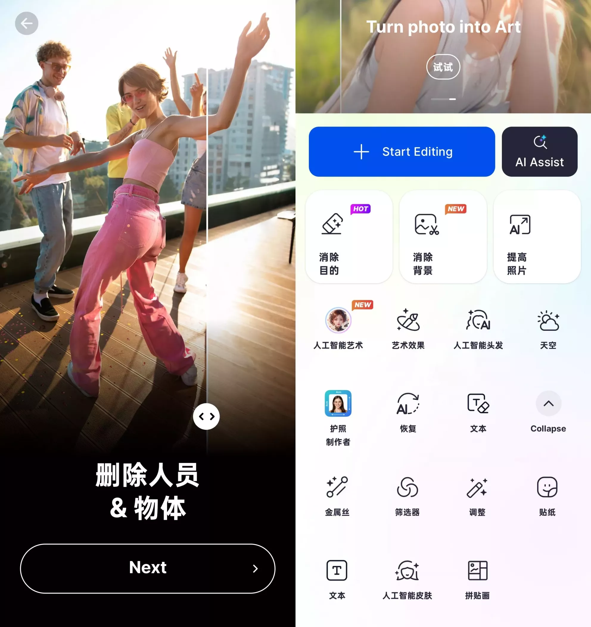立即下载 大小: 点击:26次 SnapEdit破解Pro会员版 支 持:安卓手机 分 类:安卓软件 大 小: 版 本:7.3.7 点击量:26次 发 布:2025-07-13 手机扫码免费下载 #截图 #简介 SnapEdit是一款基于人工智能技术的全场景照片编辑工具,通过AI驱动的智能识别与处理能力,让用户无需专业技巧即可实现精准抠图、对象移除、画质增强及老照片修复等复杂操作,重塑数字图像的编辑体验。