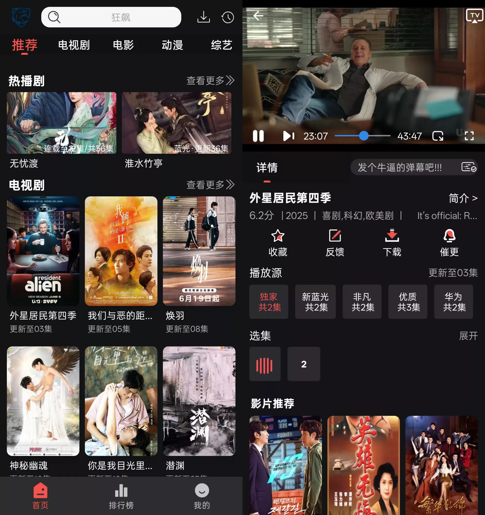 功能特点:多平台内容观看:蓝鹰影视App支持跨平台内容观看,无论用户身处何地,都能随时随地享受影视盛宴。破解永久会员特权:登录即可享受更多观影特权,如独家内容、高清画质、无广告观看等,提升观影体验。观看历史记录:应用自动记录用户的观看历史,方便用户随时继续观看或回顾精彩内容。收藏与下载功能:用户可将感兴趣的内容收藏至“我的收藏”,或下载至本地,实现离线观看,不受网络限制。内容优势:内容丰富多样:蓝鹰影视App拥有海量影视资源,涵盖动作喜剧、喜剧、科幻等多种类型,满足不同用户的观影偏好。最新最热内容:应用紧跟潮流,实时更新最新、最热门的内容,让用户第一时间观看到热门影视作品。高清画质:蓝鹰影视App提供高清、蓝光等多种画质选择,让用户享受极致的观影体验。用户界面设计:分类清晰:应用界面设计简洁明了,内容分类清晰,用户可快速找到感兴趣的内容。同时,每个分类下还有更具体的子分类,如爱情古装国产剧、剧情古装剧集等,方便用户精准定位。首页与排行榜:首页展示推荐内容或最新内容,让用户快速了解当前流行或受欢迎的影视作品。排行榜则展示热门或高评分的作品,为用户提供观影参考。搜索与筛选:蓝鹰影视App提供强大的搜索功能,用户可通过关键词快速找到想观看的内容。同时,应用还支持筛选功能,用户可根据地区、类型、年份等条件进行筛选,精准定位心仪的影视作品。用户评价: