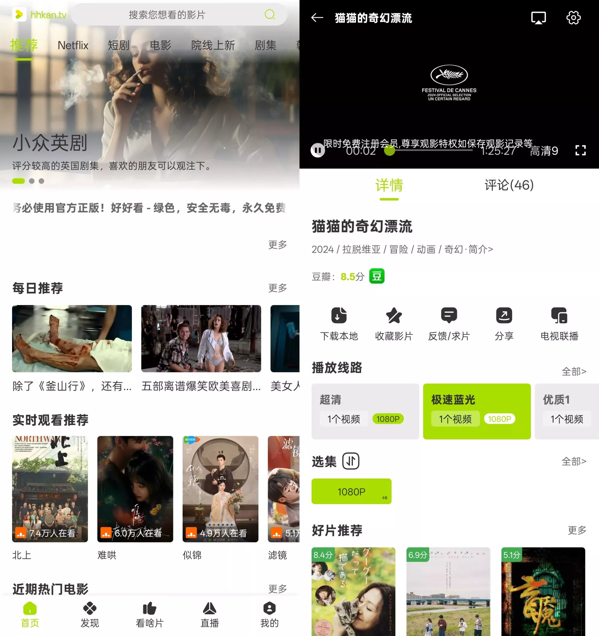 好好看影视app是一款集高清影视资源播放、个性化推荐于一体的综合性影视娱乐应用。它汇聚了海量正版高清电影、电视剧、动漫、综艺等丰富多样的视频内容,致力于为用户提供流畅、高质量的观影体验。