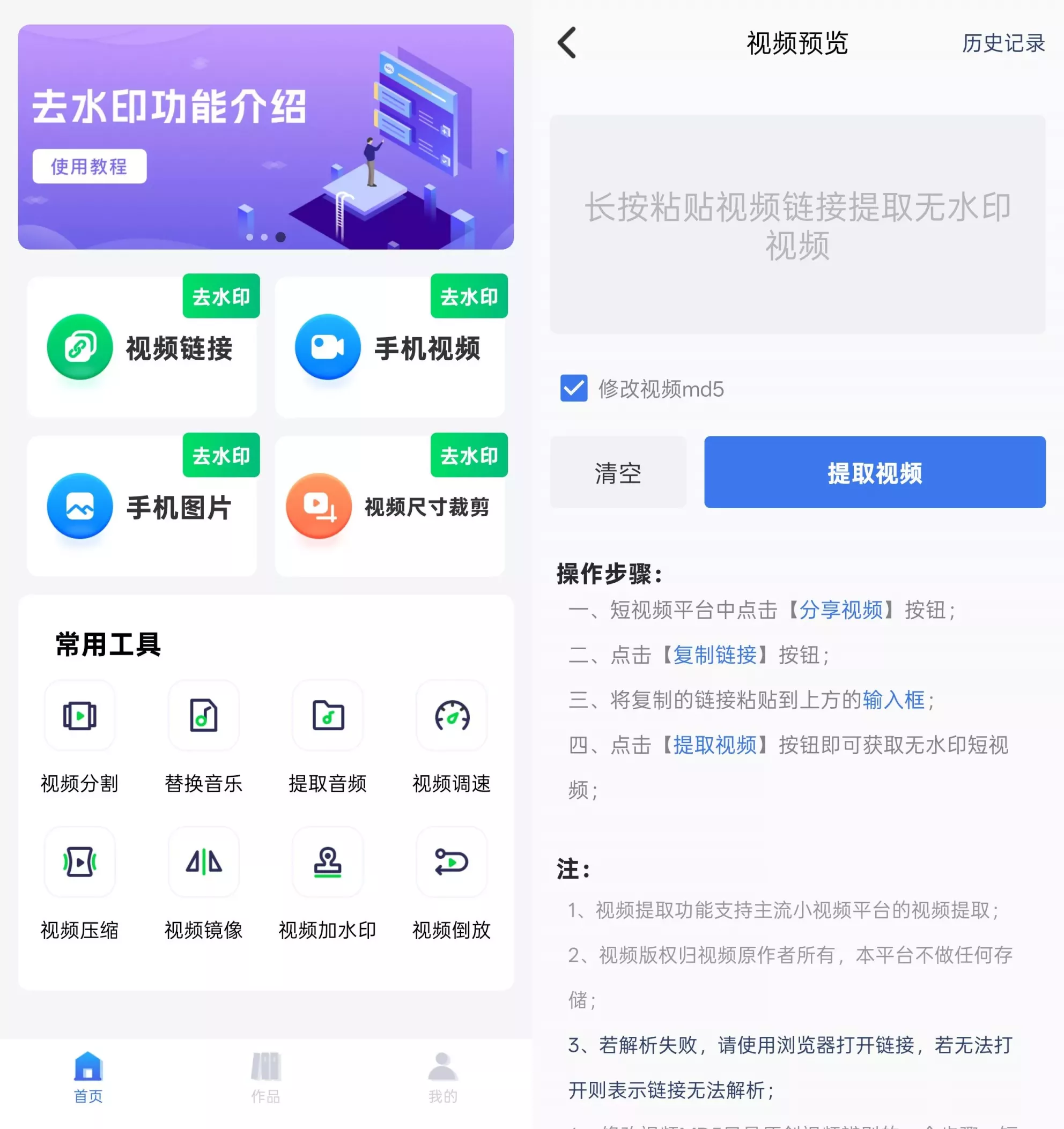 立即下载 大小: 点击:34次 无痕去水印助手破解永久VIP会员版 支 持:安卓手机 分 类:安卓软件 大 小: 版 本:1.4.0 点击量:34次 发 布:2025-07-13 手机扫码免费下载 #截图 #简介 无痕去水印助手App是一款专注于高效去除图片与视频水印的安卓移动工具。其核心目标是通过智能化技术帮助用户快速清除各类水印标记,同时保留原始画质,满足内容创作者、社交媒体用户及日常编辑需求。
