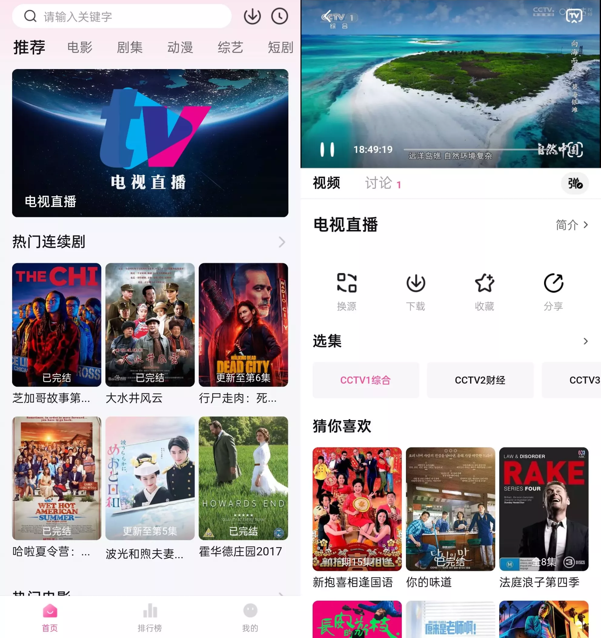 草莓熊影视App的个性化推荐功能也是其一大亮点。App会根据当前热度整理内容,并基于用户的观看历史和偏好进行智能推荐,让用户轻松发现更多喜爱的影视作品。此外,App还提供电视直播功能,涵盖CCTV等热门频道,让用户不错过任何精彩节目。