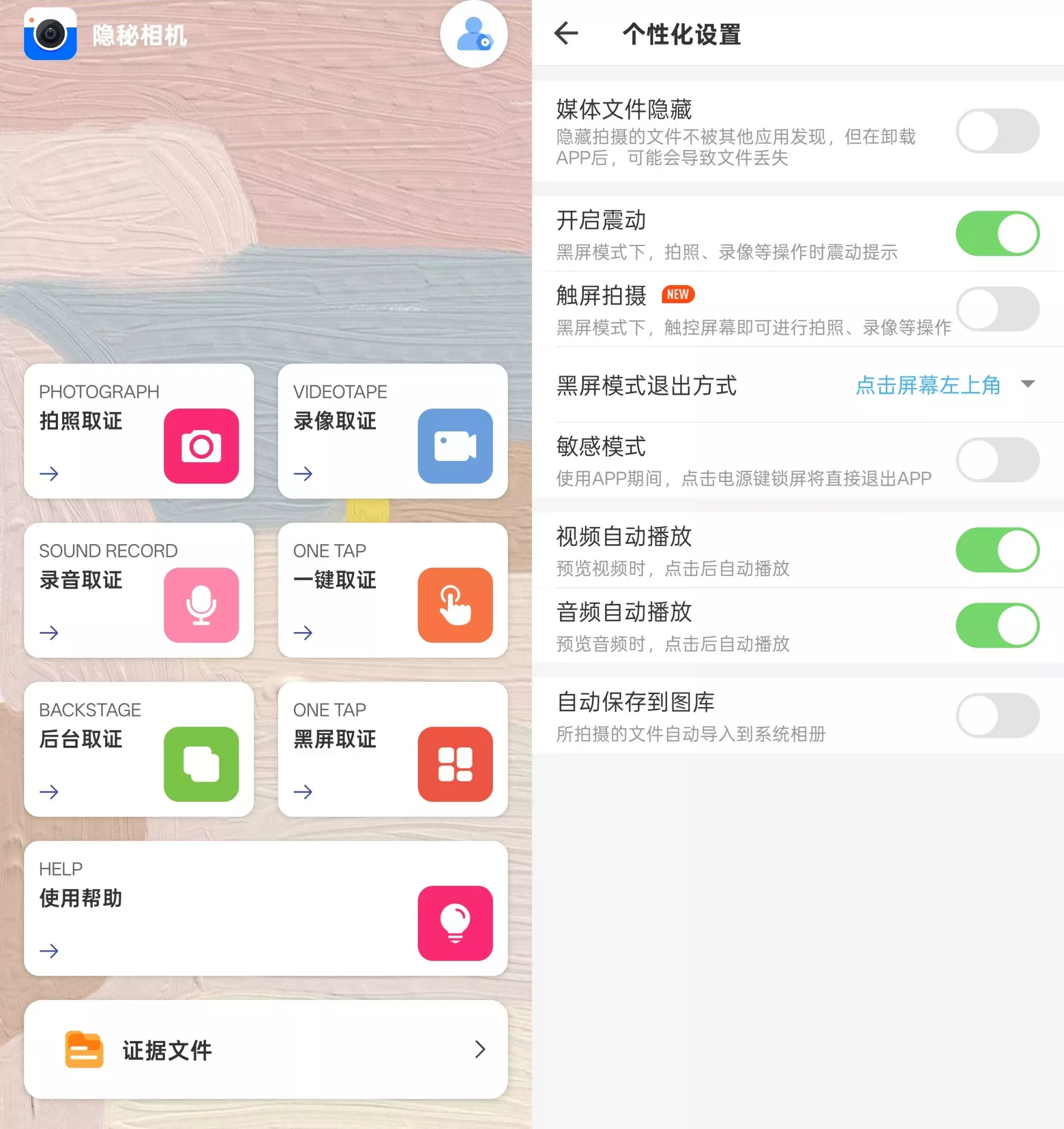 隐秘相机 App 是一款专业级音视频录制取证软件。它专为Android平台设计,致力于在用户需要高度隐蔽性、安全性的场景下,提供强大而可靠的拍摄与录音解决方案。无论是记者暗访、律师取证、市场调研,还是个人隐私保护、突发情况记录,隐秘相机都能成为您手中不可或缺的“隐形助手”。