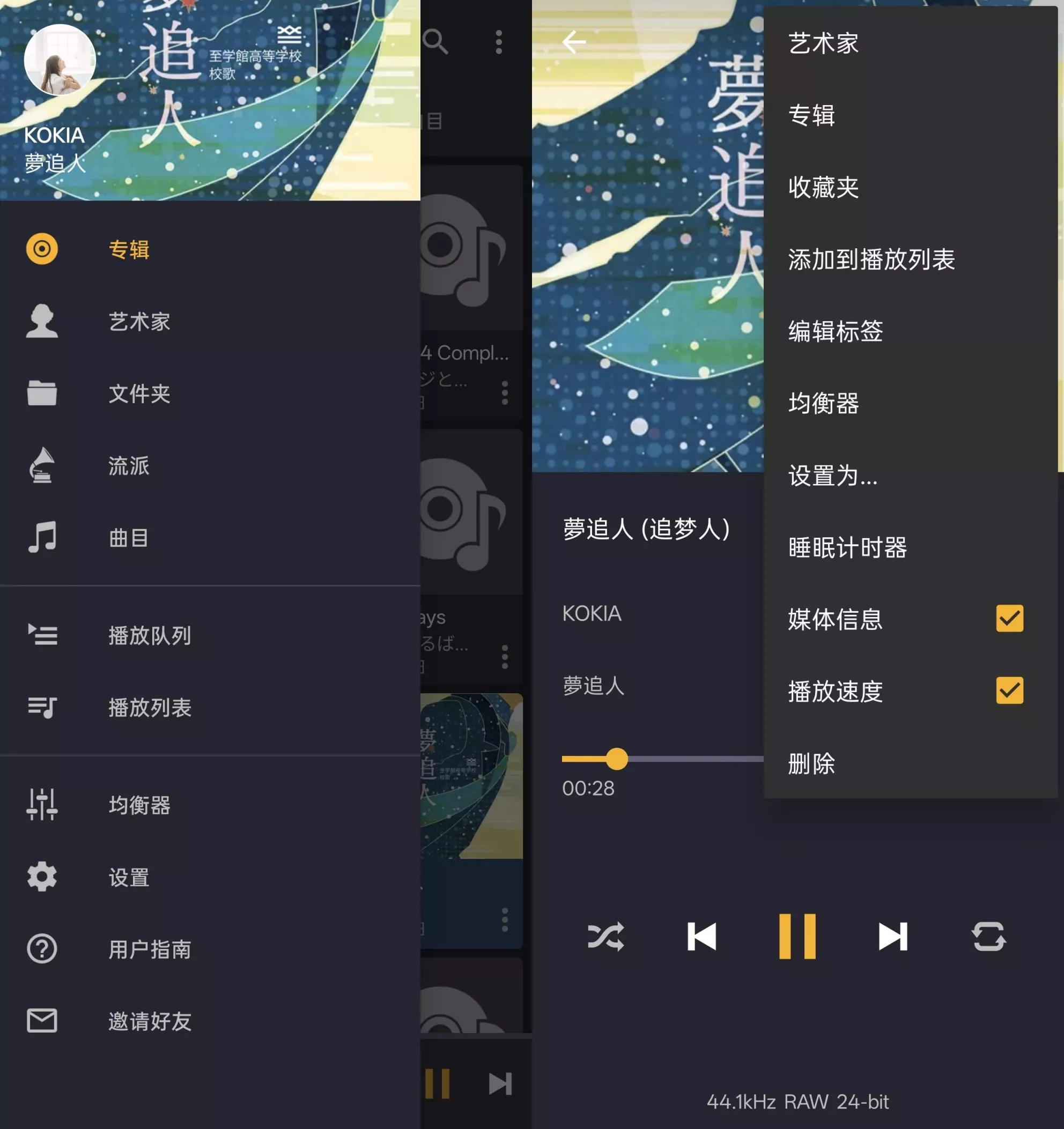 界面与体验遵循 Material Design :界面设计完全遵循 Google 的 Material Design 设计规范,拥有精美的用户界面和流畅的动画效果,视觉上简洁美观,操作体验直观自然。多种主题与自定义 :提供丰富多彩的主题设置,还支持主题定制,用户可根据个人喜好更换播放器的外观,打造专属的音乐播放界面。功能特点音乐管理分类管理 :可以通过专辑、艺术家、文件夹和流派等多种方式分类管理和播放音乐,让用户能够快速找到自己想听的歌曲。智能播放列表 :包含最多播放、最近播放、最近添加等智能播放列表,方便用户根据自己不同的需求和习惯收听音乐。播放功能无缝播放 :支持无缝播放,歌曲之间的过渡更加流畅自然,不会因为歌曲切换而中断音乐体验。定时关机 :具备定时关机功能,用户可以在听音乐时设置定时关闭播放器,无需手动关闭,方便又实用。多设备支持 :支持 Chromecast、Android Auto 等设备,用户可以将音乐投射到其他设备上播放,满足不同场景下的音乐需求。音效设置均衡器 :配备 5 段式均衡器设置,以及重低音和混响设置,用户可以根据自己的喜好调整音效,打造出个性化的听音效果,让每一首歌曲都能呈现出最佳的音质。ReplayGain :基于 ReplayGain 技术,可以自动调整音乐的播放音量,使得不同歌曲之间的音量保持相对一致,避免了因音量差异过大而影响听觉体验的问题。其他功能自动下载显示图片 :能够自动下载和显示专辑封面和艺术家图片,丰富了用户的视觉体验,让音乐更有氛围感。快速搜索 :具备快速搜索功能,用户可以迅速找到自己想要的专辑、艺术家和歌曲,提高了查找音乐的效率。音乐标签编辑器 :支持音乐标签编辑器,用户可以对音乐文件的标签信息进行编辑和修改,方便管理和分类音乐。歌词显示 :支持歌词显示功能,方便用户在听歌的同时查看歌词,更好地理解和感受歌曲的内涵。音乐视觉特效 :支持音乐视觉特效显示,为用户带来更加丰富的视觉享受,让音乐不仅仅局限于听觉层面。左右声道均衡 :支持左右声道均衡,用户可以根据自己的需求调整左右声道的音量平衡,获得更加舒适的听音效果。Last.fm Scrobbling :支持 Last.fm Scrobbling 功能,用户可以将自己的听歌记录同步到 Last.fm 平台上,与其他音乐爱好者分享自己的音乐品味和听歌习惯。格式支持