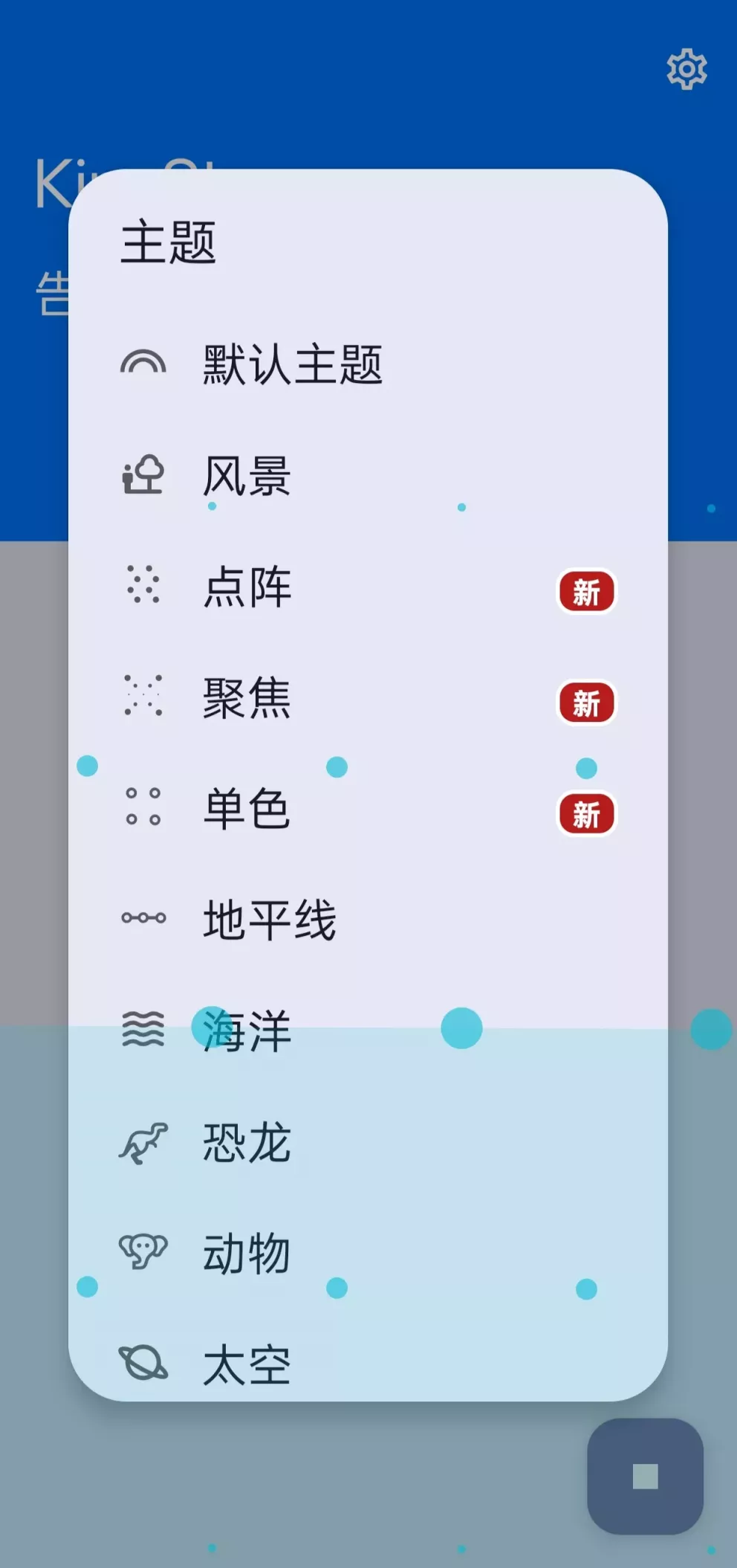 视觉效果更显著:相较于 iOS 18 的“小黑点”提示,KineStop 的动画覆盖屏幕约 50% 区域,动态效果更直观、丰富,用户反馈其缓解晕车效果更明显。主题多样化:提供十余种动画主题(如波纹、粒子、星空等),用户可自由切换,兼顾功能性与趣味性。核心亮点