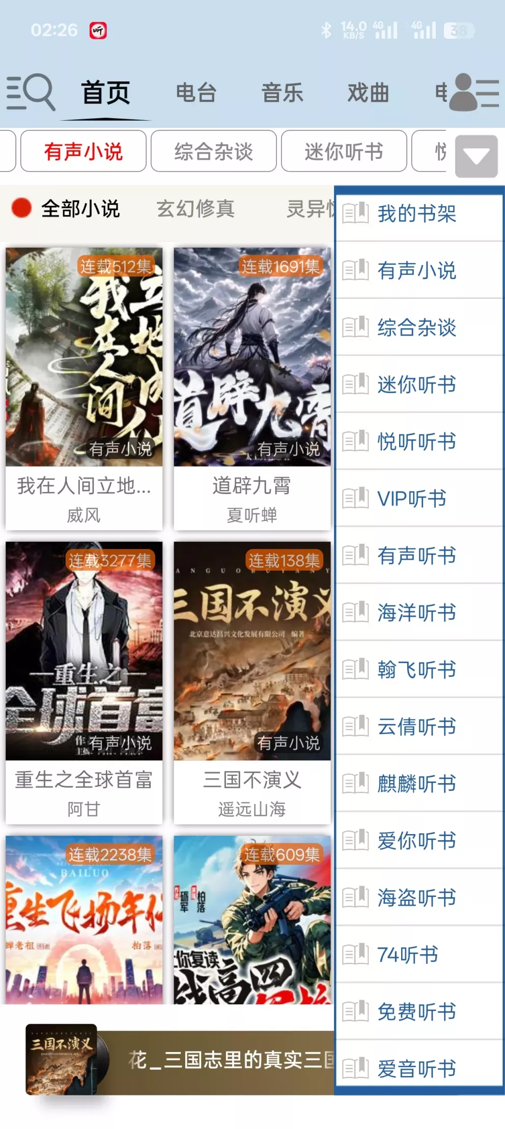 昊昊听书app是一款集小说、电台、音乐、戏曲于一体的全能听书神器!它整合全网超多听书平台资源,支持免费无广告畅听,覆盖玄幻、言情、悬疑、国学、评书、广播剧等海量内容,满足不同用户的听觉需求。无论是通勤、开车、睡前放松,还是专注学习,都能找到适合你的优质资源。