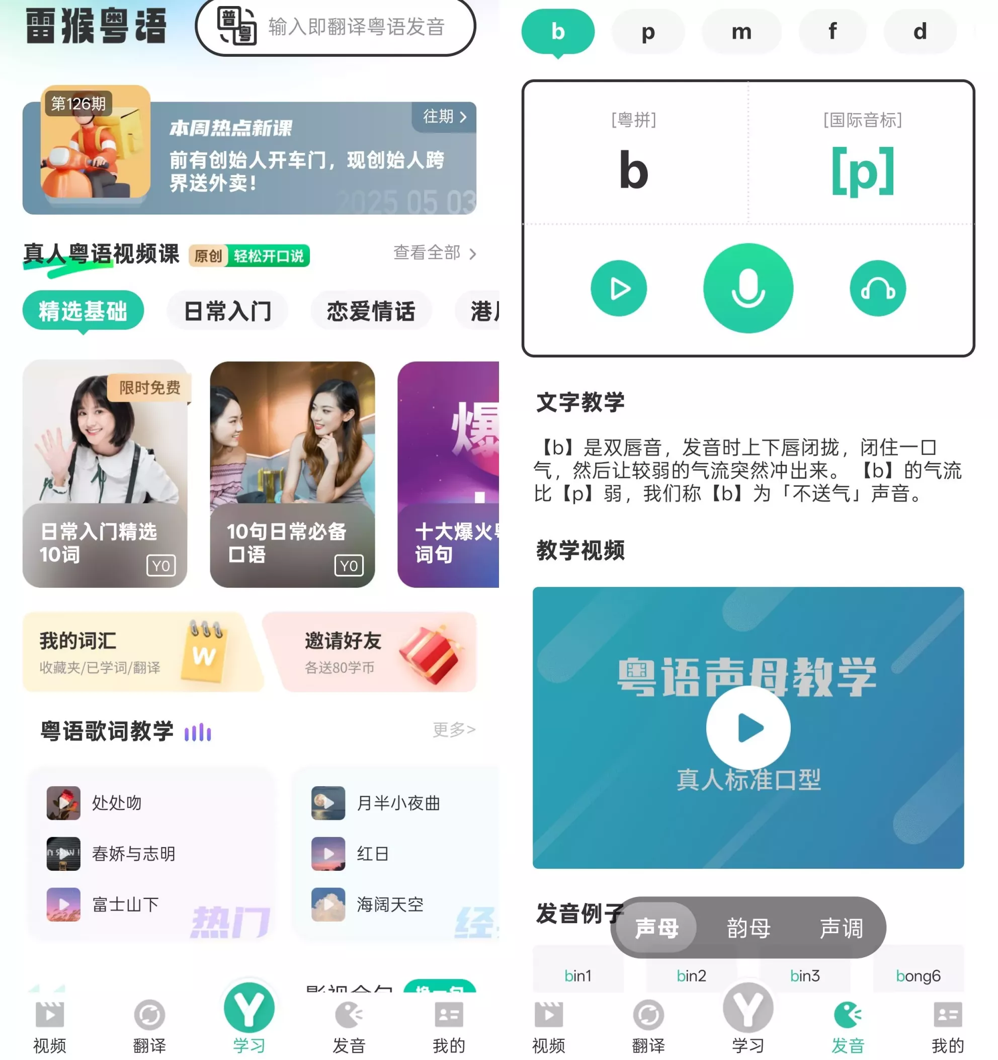 在此背景下,移动应用(App)成为粤语学习的重要工具。它们通过碎片化学习、场景化教学和娱乐化内容,打破了传统课堂的时空限制。以雷猴粤语学习通App为代表的数字化产品,不仅整合了发音教学、影视资源、歌曲学习等多元内容,更通过AI技术(如发音评分、语音翻译)提升学习效率。这类应用的核心价值在于:将语言学习从“工具性”转向“文化浸润”,让学习者不仅能“说粤语”,更能“理解粤语背后的生活方式与历史脉络”。