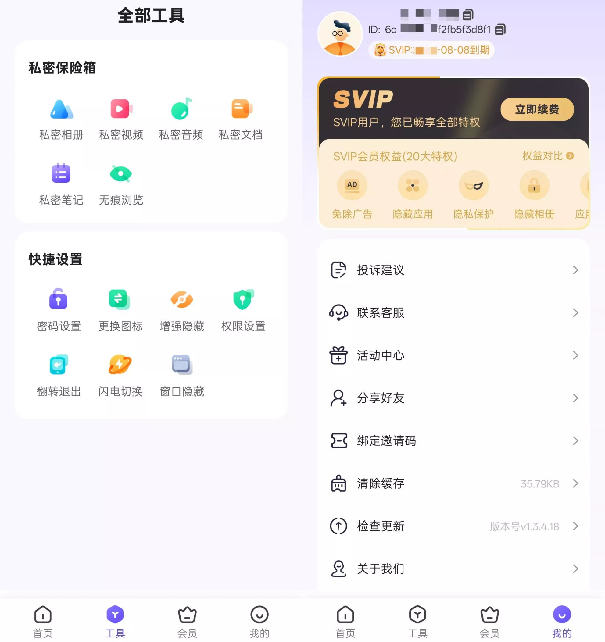采用AES加密技术保障数据安全,同时提供应用锁定、隐私浏览器、隐藏通知等附加功能。用户可为单个应用设置独立密码,甚至启用“深度隐藏模式”,彻底替换应用名称及管理入口,防止他人通过系统设置发现痕迹。