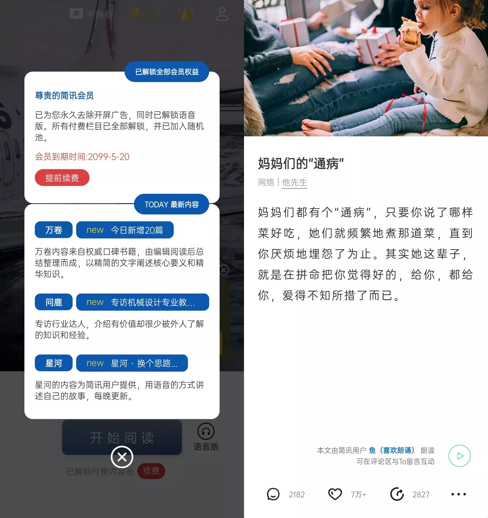 开通会员可破解语音版内容、万卷硬核知识库及专属“星河故事”等深度栏目,并去除广告干扰,提升沉浸式体验。会员套餐覆盖1年至4年周期,支持微信/支付宝支付。