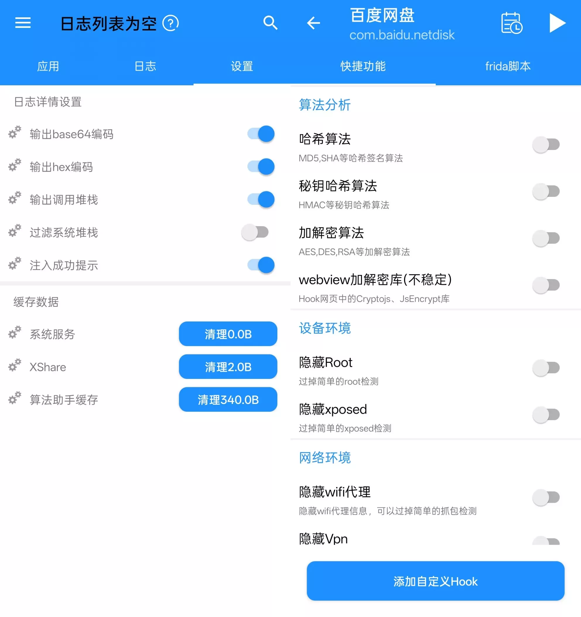 提供一键隐藏Xposed、Root、代理等敏感环境的功能,支持绕过应用的反调试检测。例如,通过伪装系统框架调用,避免被目标应用识别为调试状态,提升逆向分析的隐蔽性。