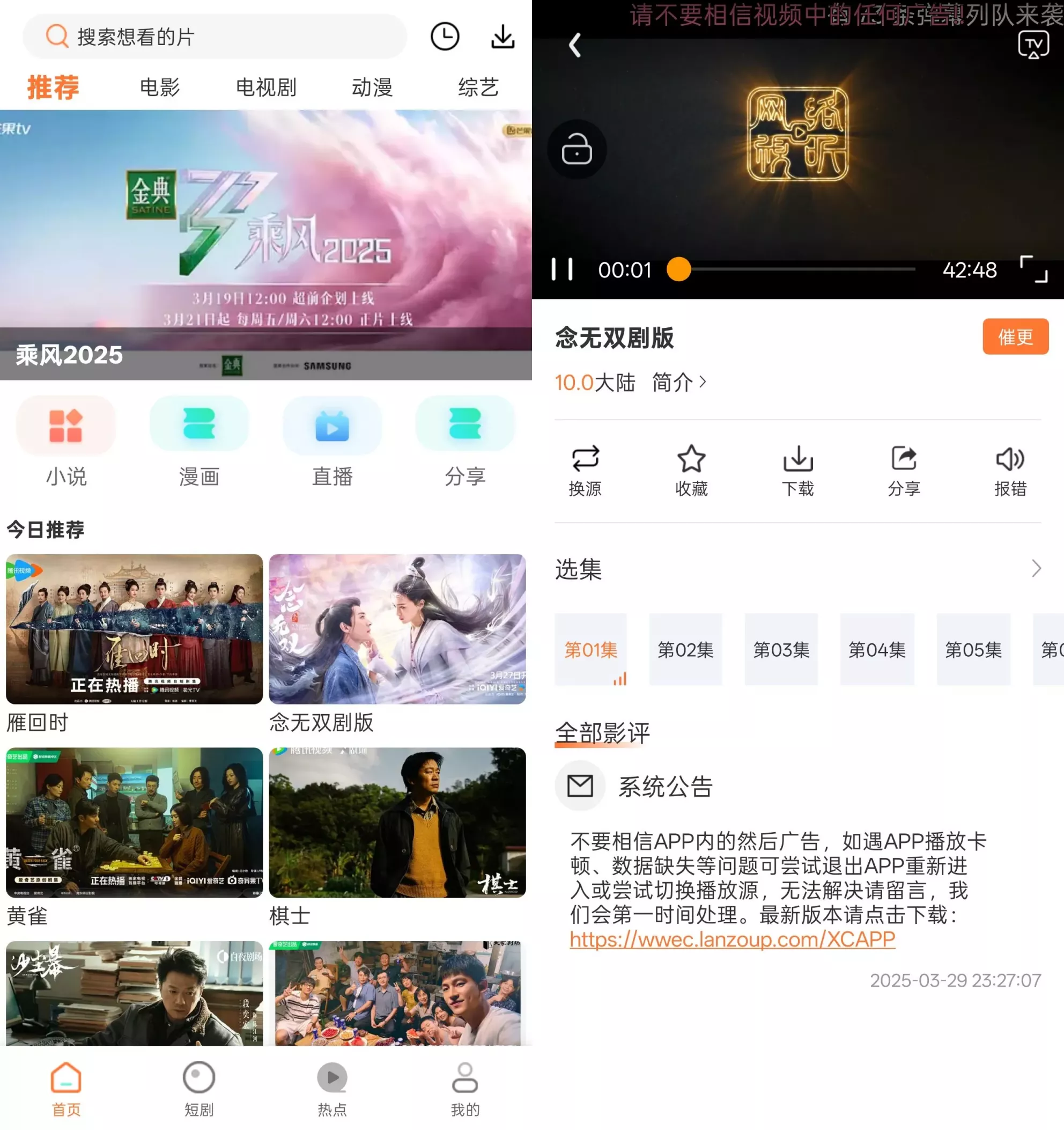 主要功能免费影视资源:用户可畅享各类高清电影、电视剧,无论是国内热播剧还是海外大片,全部免费观看。更新速度快,确保用户第一时间捕捉到最新剧集。小说与漫画:除了影视资源,香葱追剧还提供丰富的小说和漫画内容。从热门小说到经典漫画,一应俱全,满足不同用户的阅读喜好。短剧精选:特别增设短剧板块,精选各类精彩短剧,适合碎片时间观看,让娱乐更轻松。无广告观影:去广告版的最大亮点在于其纯净的观影环境。用户在使用过程中不会遇到任何广告打扰,极大地提升了观看体验。智能搜索:内置强大的搜索引擎,用户可快速找到想看的影视、小说或漫画。。离线下载:支持视频、小说和漫画的离线下载功能,用户可以在无网络环境下也能畅享娱乐内容。软件特色界面友好:简洁直观的用户界面设计,使操作更加便捷,易于上手。高清流畅:提供高清流畅的播放体验,支持多种画质选择,适应不同网络环境。内容丰富:影视、小说、漫画、短剧,全方位覆盖,满足各类娱乐需求。更新迅速:资源更新速度快,紧跟潮流,确保用户不会错过任何精彩内容。总结