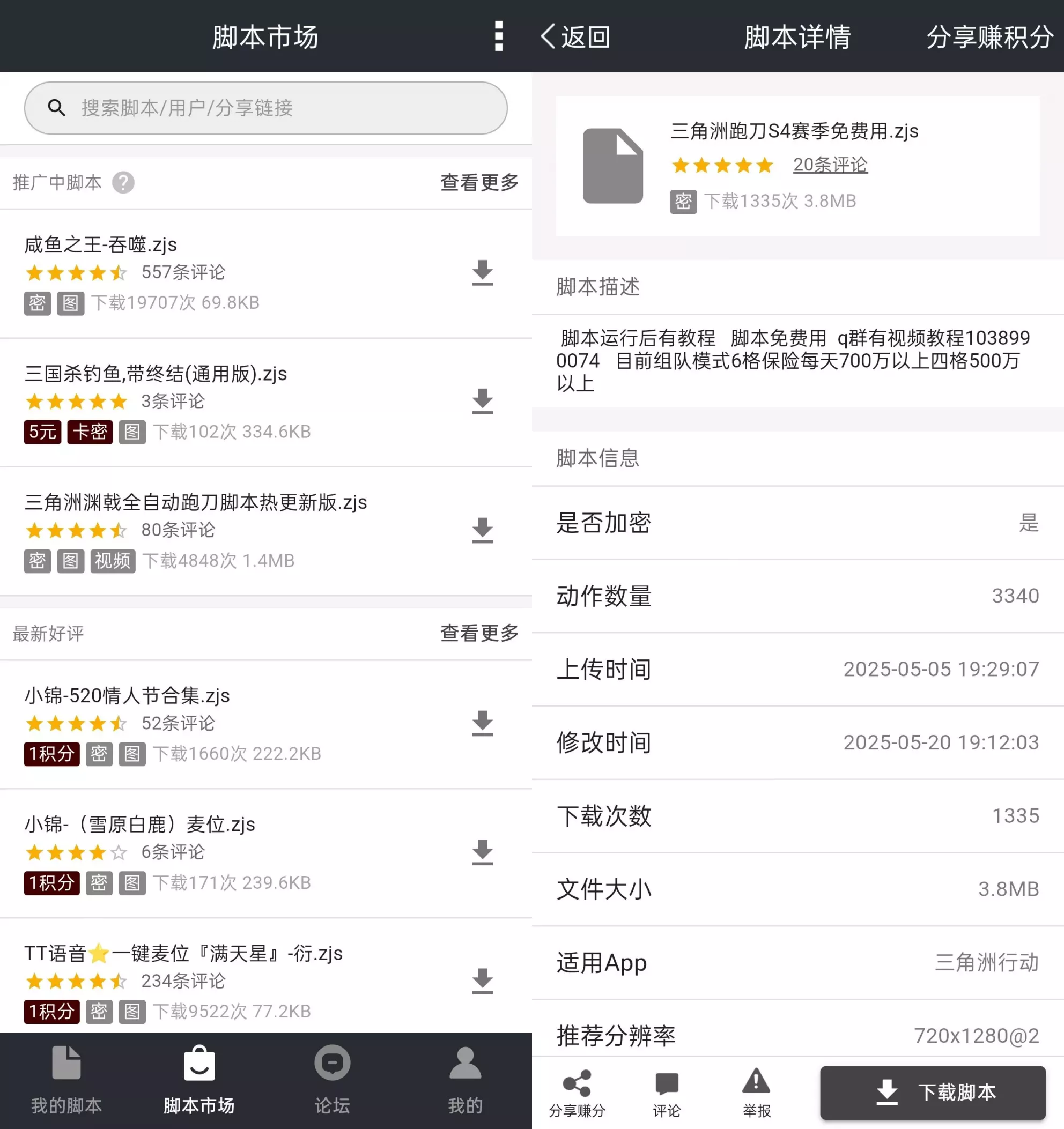 2. 灵活多样的脚本编辑方式录制生成:用户通过界面操作即可自动生成脚本,适合新手快速创建自动化流程。代码/图形化编辑:支持变量、循环、条件判断等高级功能,满足复杂任务需求。例如,可设置循环点击间隔时间或根据屏幕文字动态调整操作逻辑。脚本市场:内置海量用户共享脚本,涵盖游戏辅助(如自动刷副本)、办公自动化(如定时发送消息)等场景,用户可直接下载使用。3. 多场景适用性与高效执行