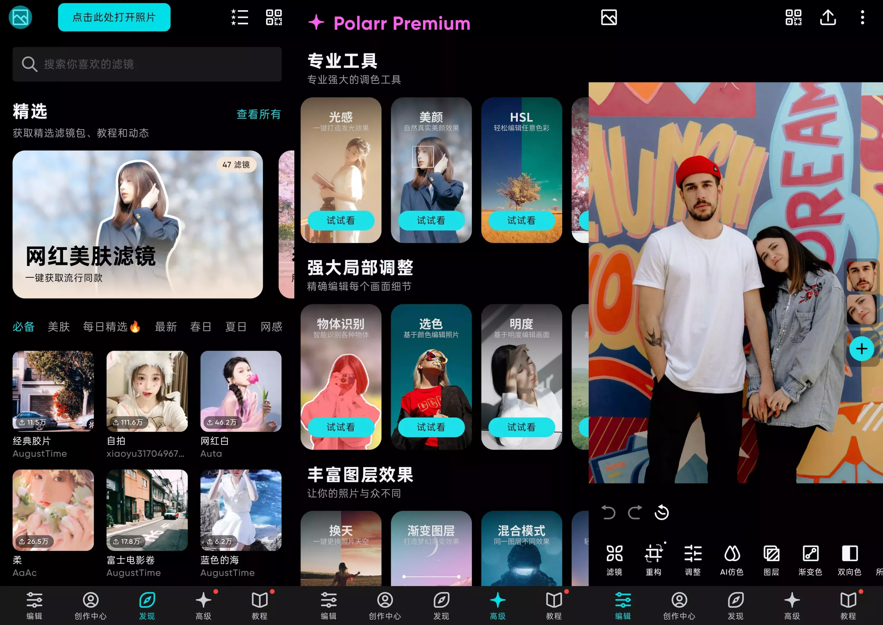 泼辣修图(Polarr)是一款跨平台专业修图软件。它以“专业级移动修图”为核心定位,集成了丰富的全局与局部调整工具、AI智能功能以及自定义滤镜系统,既适合摄影爱好者快速上手,也能满足专业摄影师对精细后期处理的需求。
