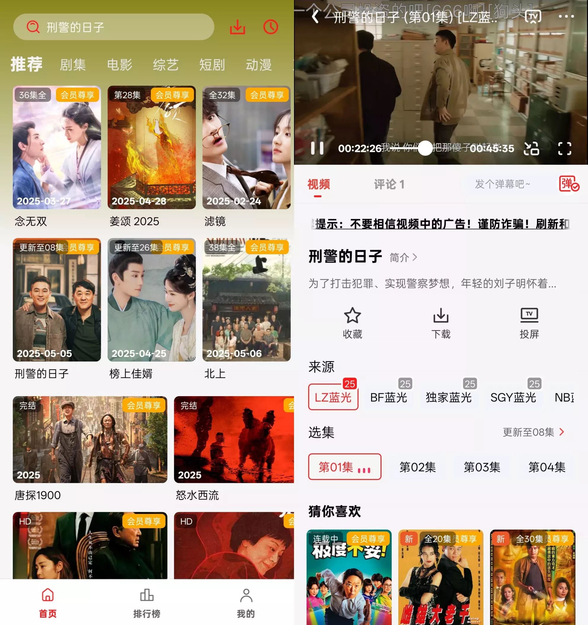 播放功能更是一大亮点,不仅支持高清流畅播放,播放全程无广告打扰,还提供投屏、切换播放源等实用功能,帮助用户解决播放卡顿或画质不佳的问题。软件还支持离线缓存,用户可提前将影视下载到本地,随时随地畅享精彩剧情。小熊猫凭借强大功能和丰富资源,成为众多影视迷手机必备的观影神器。