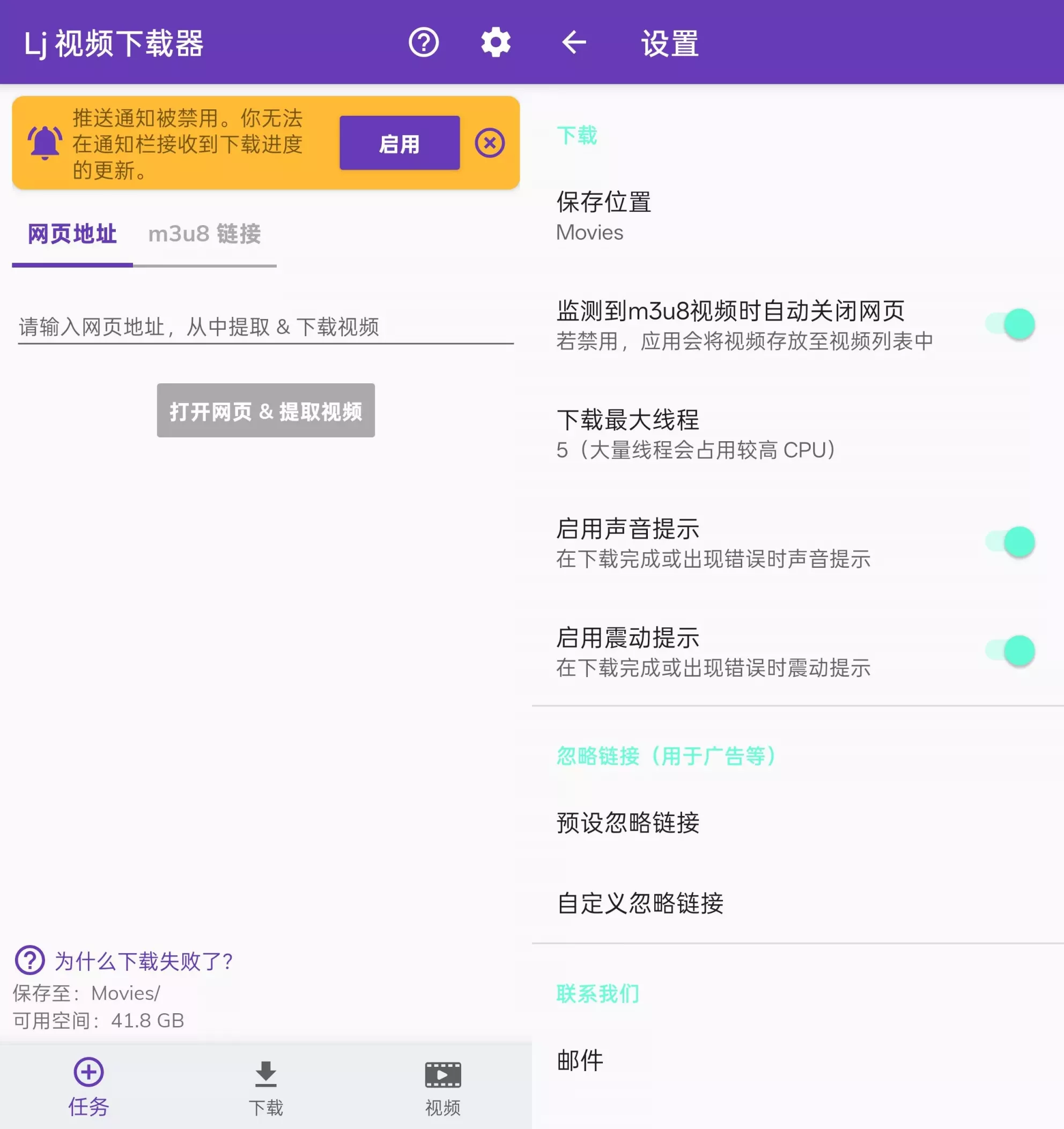 支持下载m3u8、mp4、mpd、mov等主流视频格式,并能自动将m3u8/mpd格式转换为mp4,确保离线播放兼容性。对于音频/视频分离的m3u8格式,软件也能精准提取并分别保存。