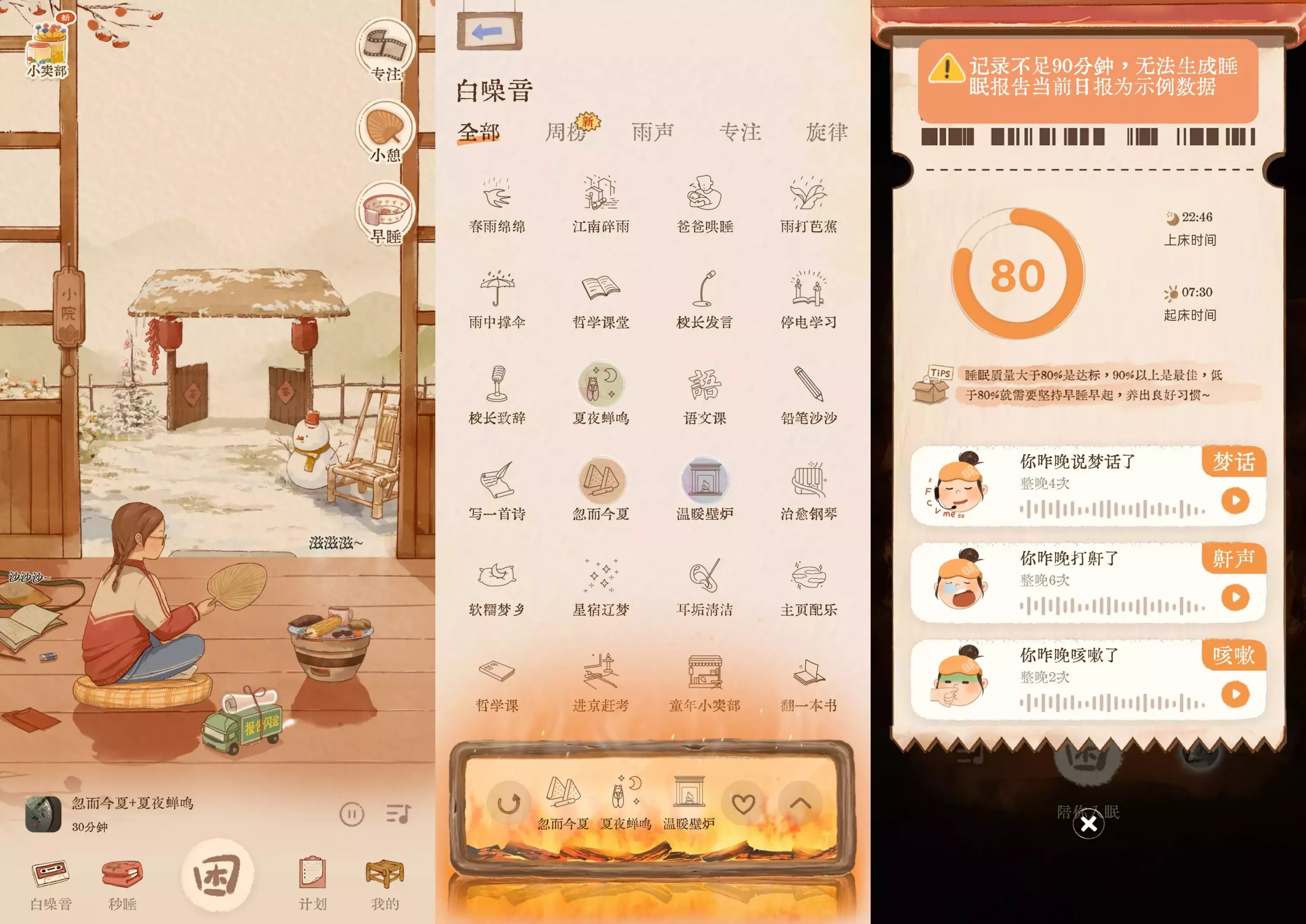 一、核心功能亮点1. 多维度白噪音组合与沉浸式环境