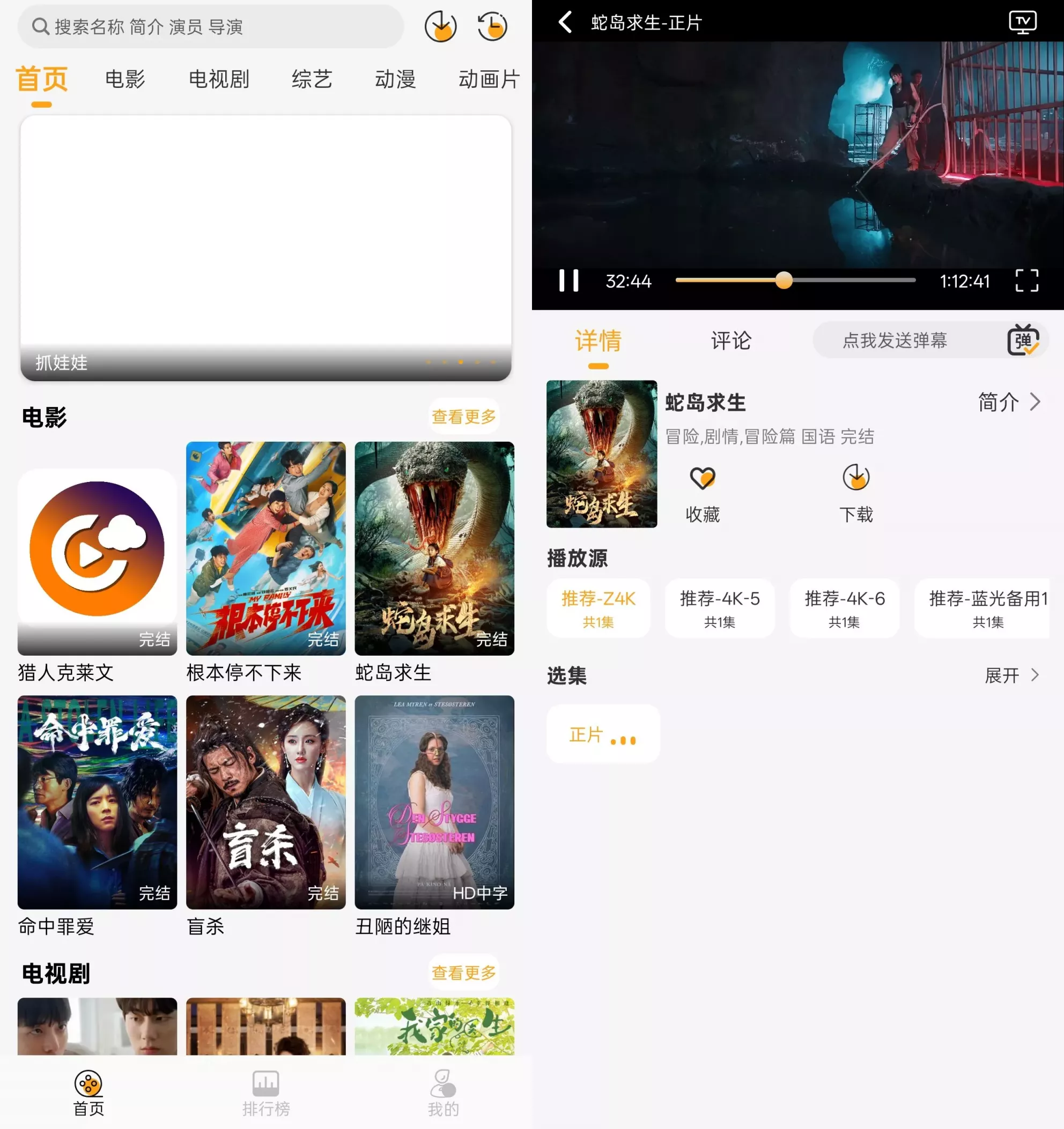 核心功能1. 海量资源库覆盖电影、电视剧、综艺、动漫、纪录片等全品类内容,资源更新速度快,紧跟影视动态。2. 高清流畅播放支持高清至超清分辨率,适配手机、平板、电视等多种设备,画质细腻,播放稳定无卡顿。3. 智能推荐与个性化服务基于用户观影历史和偏好,AI算法精准推送符合兴趣的影视作品,节省找片时间。提供热门榜单、分类专题、每日推荐等功能,帮助用户快速发现优质内容。4. 离线缓存与多端同步支持高速下载影视资源,无网状态下也能随时观看,满足通勤、旅行等场景需求。多设备无缝切换:从手机到电视,播放进度实时同步,续播无压力。特色亮点跨平台兼容性:适配Android系统,界面简洁友好,操作直观易上手。互动社交功能:支持弹幕发送、影评分享、好友互动,增强观影趣味性。投屏功能:一键将手机内容投射到电视或投影仪,享受大屏影院级体验(需同一WiFi环境)。隐私与安全:采用端到端加密技术,保护用户数据和观影记录,确保隐私安全。用户体验