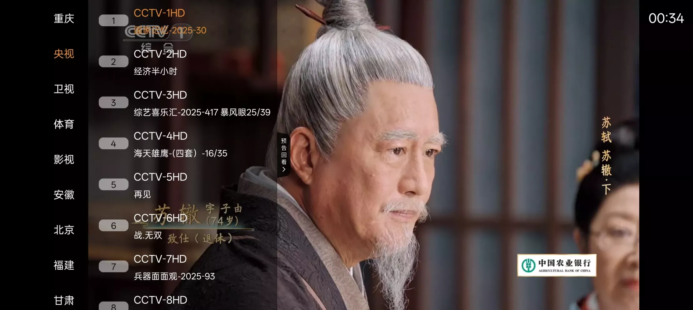 安装后进入首页,通过方向键选择频道分类→进入子菜单选择具体频道→按确认键播放。长按菜单键可调出“收藏”或“回看”功能。