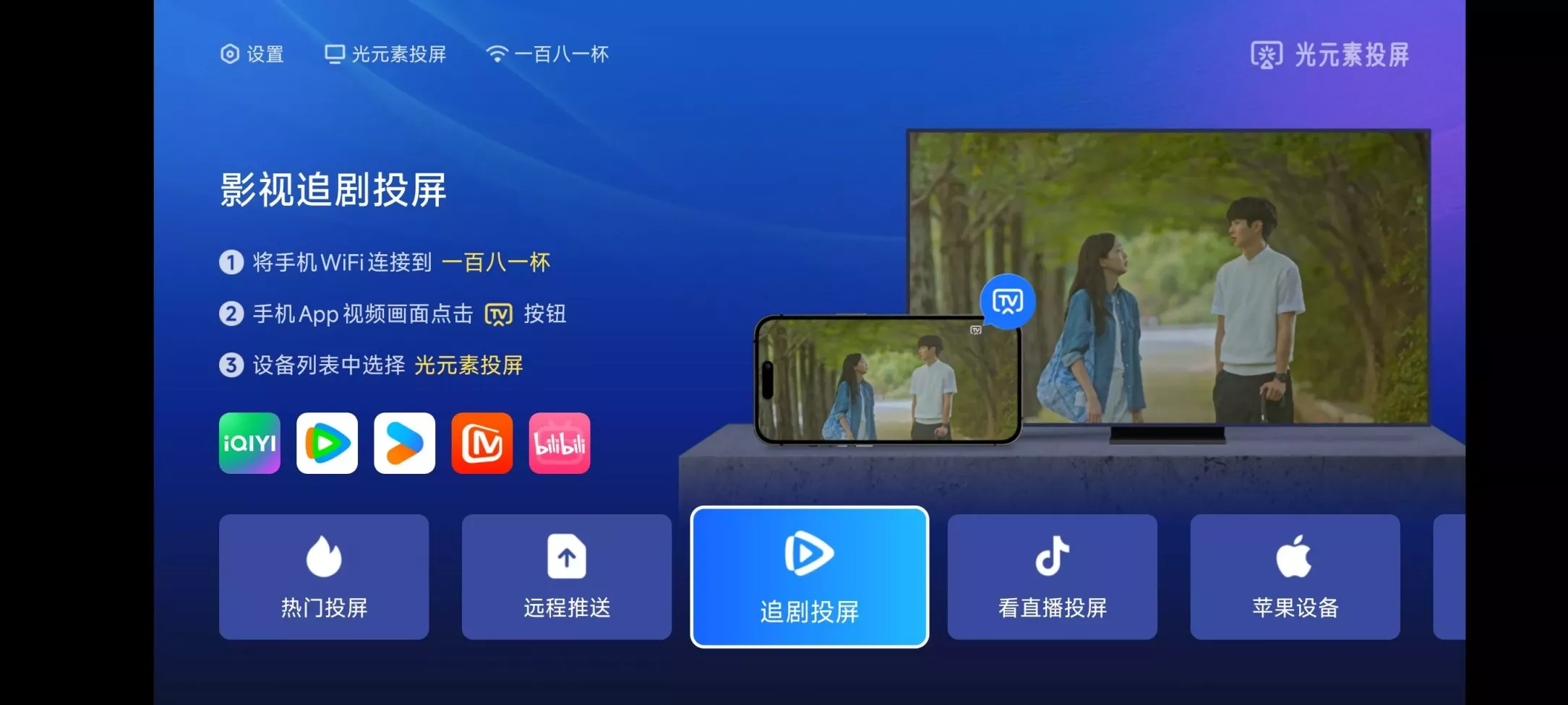 功能特点多协议兼容 :完美支持苹果 AirPlay、DLNA、华为 cast + 等主流投屏协议,无论是安卓设备还是苹果设备,都能轻松连接投屏。一键高清投屏 :支持手机端主流的影视 App、直播 App 和游戏 App 的一键高清投屏,最大支持 4K 清晰度投屏,能让用户在大屏上享受更清晰、更细腻的画面。无广告纯净体验 :在视频播放前不插播任何投屏广告,秒速起播,追剧不用等,为用户提供了更畅快的投屏体验。多种投屏方式 :支持无线投屏、有线投屏、二维码投屏、AirPlay 投屏等多种投屏方式,满足用户在不同场景下的需求。功能丰富 :支持投屏画面的控制、语音控制、字幕设置等多种功能服务,还可以进行手机远程操控,开启定时投屏模式。软件优势无广告更纯粹 :与一些带有广告的投屏软件相比,光元素投屏电视版的无广告设计让用户能够更加专注于投屏内容,不会被打断观看思路。高清稳定流畅 :采用先进的技术,确保投屏画面高清、稳定、流畅,不会出现卡顿、花屏等问题,为用户带来良好的视觉享受。适用范围广 :支持多种协议和多种设备,包括不同品牌的电视、投影仪等,用户无需更换设备即可使用该软件进行投屏。使用场景家庭娱乐 :用户可以将手机上的电影、电视剧、综艺节目等投屏到电视上,与家人一起分享观看,享受大屏带来的震撼效果。商务办公 :在商务会议中,可将手机或电脑上的演示文稿、图表等投屏到电视上,方便与同事、客户进行沟通和展示。酒店客房 :酒店可以为客人提供私密投屏服务,保护客户的观影隐私,扫码一键开启,无广告无打扰。常见问题及解决方法投屏搜索不到设备 :请确保手机和投影仪 / 机顶盒 / 电视已连接同一个 WiFi 和网络;确保网络通畅可正常浏览和访问;如仍无法搜索到设备,可尝试重启设备和路由器,打开光元素投屏 App 重试。投屏后视频播放有广告 :光元素投屏本身不会在投屏视频前添加任何形式的广告,但使用爱奇艺、腾讯视频、优酷等第三方 App 时,若有投屏广告则是由三方视频平台添加,部分内容视频平台 vip 可享受免广告投屏。投屏后提示播放失败 :先检查网络是否畅通,可正常浏览和访问;使用爱奇艺、腾讯视频、优酷等第三方 App 时,部分内容为加密保护内容,限制投屏观看,此时无法正常播放。投屏时限制清晰度 :使用爱奇艺、腾讯视频、优酷等第三方 App 时,可投屏清晰度为视频平台限制,部分内容需开通 VIP 或者使用其他投屏方式方可投屏 1080P 或更高清晰度。安卓手机无法投屏 :华为手机可使用 cast + 协议投屏,需确保光元素投屏 App 内 cast + 投屏为开启状态;其它安卓手机暂时不支持直接投屏,可在视频 App 播放时,点击视频中的投屏按钮投屏。