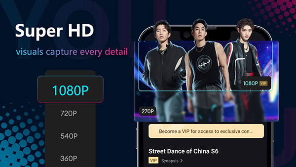 2、画质选择-更清晰:支持各种画质的播放和下载,带给您更高品质视觉享受。