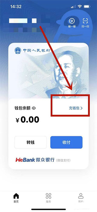 4、其显示信息的关键作用与金融机构电子账户平时支付与管理方法作用基础类似,如农业银行数字货币钱包主页中,有“扫二维码支付”“汇钱”“支付款”“碰一碰”四大常用功能。