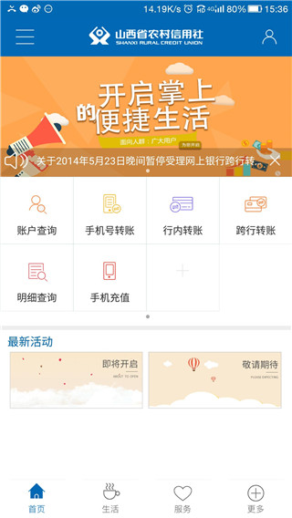 山西农村信用社手机银行app是为智能手机用户量身定制的移动金融服务平台,具有账户查询、行内转账、跨行转账、当面付等功能。让您只有有网络的情况下,具有随时随地可以操作自己的账户。