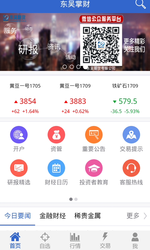 东吴掌财app是一款由东吴期货官方推出的手机期货、期权行情查看和交易软件,也称之为东吴期货手机交易软件官方版。软件集期货开户、内外盘行情、极速交易、财经资讯、交易策略、精彩研报、理财产品等功能于一身的掌上期货交易终端。同时在期货、期权行情查看方面,该软件支持更新的行情数据,包括价格、成交量、涨跌幅等关键信息,帮助用户随时了解市场动态,并且配备丰富的图表展示功能,如K线图、柱状图、折线图等,以及各种技术指标和工具,供用户进行技术分析和预测。另外东吴掌财app在交易方面可以选择众多交易所服务器,并且使用东吴证券资金账号进行直接登录交易,在交易过程中可以提供自动止损止盈等稳定交易策略,保证理性投资用户或新手投资用户的资金安全,有需要的用户可以在本站免费下载使用。