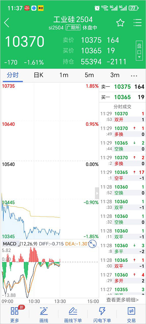 高速:行情速度与PC版软件同步,报价、分时、K线界面切换迅速