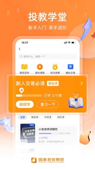 2、次要宫格入口:涨跌幅榜、龙虎榜、期货开户、资金流向、基差价差、交易时间、交易日历、保证金率、模拟交易、国君资管