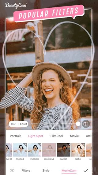 7、美颜特效:独家研发的多款细腻的人像特效让你快速拥有惊艳面容;