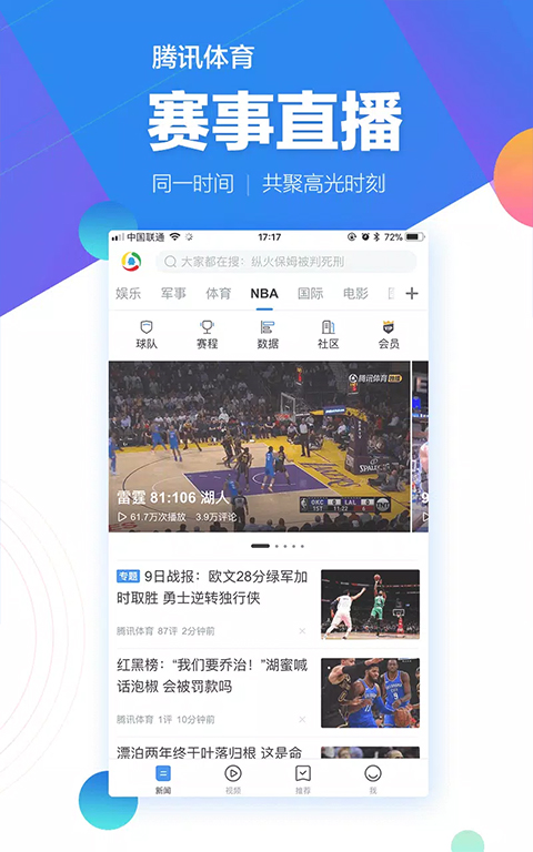 ﹣直播:乐享NBA、中超、F1、男篮世界杯、LPL、KPL等重大赛事直播,边看直播边聊天,更有神秘娱乐嘉宾等你来发现