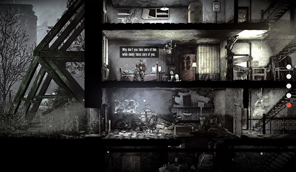 除此之外,在这是我的战争游戏中如果是白天的话外面的狙击手迫使你留在屋内,这期间你需要好好经营藏身处,可以制作、交易物品以及照顾幸存者,当然在晚上你也得派一个平民前往一系列特殊地点收集大伙儿生存必需的物资,可以说与现实生活中非常相似,可玩性极高,当然在整个游戏中玩家在游戏是无法得知战争何时结束,只有让角色存活的时间尽量长,才可能看见终局的曙光,所以你准备好了吗?