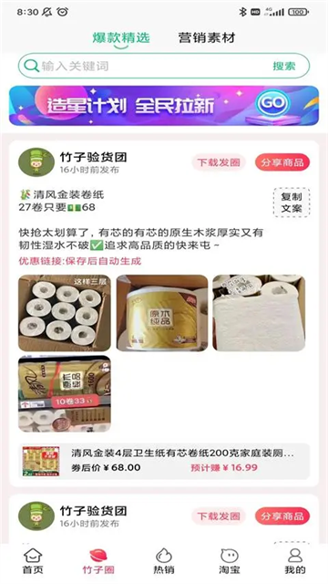 竹子拼客app是一款自用省钱,分享赚钱的优惠券app。主要为广大用户提供家居用品,生鲜商品,精品男装,女装等商品在线购买服务,并且提供苹果和安卓两种不同的操作系统,致力于打造一个正规、完善、专业的CPS电商创业平台!平台整合国内各大电商平台,每天都多达百万商品品类供买家选择分享获取佣金,还有专业的选品验货团队,筛选优质高转化率,高收益商品,官方导师也会一对一指导,免费培训,帮助建立团队,感兴趣的朋友可以了解一下哦!同时这里有每日精选好物,每日免单,还有更多优惠等你来选!