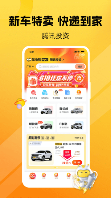 车小蜂App是一款由腾讯战略投资、便捷实用的选车工具!专注为广大消费者提供更简单、更透明的购车体验。平台整合智能选车工具、厂家直供车源、送车到家等创新服务,全面颠覆传统线下购车方式。用户通过车小蜂App,可根据车型级别、品牌、价格等维度进行精准筛选,清晰对比配置参数与价格。平台所售车辆全部为官方全新车源,无中间商加价,确保价格公开透明、品质有保障。下单后用户可享受全国送车上门服务,让购车流程更像电商购物,方便又高效。