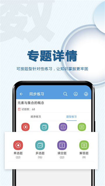 【专题练习】细化涵盖高中数学、高考数学科目的专题练习题目,并可以按题型针对性训练,每一道题目都有详细的讲解分析,错题自动分析;