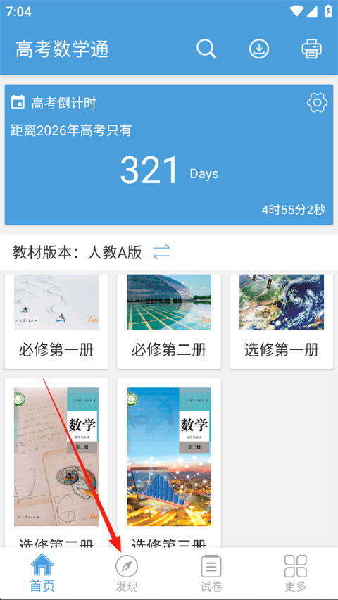 1、打开高考数学通App,点击【发现】