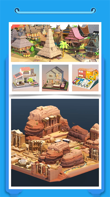 我爱拼模型最新版本是一款简单有趣的益智类模型解谜游戏,该游戏可以通过3D的模式给大家呈现出世界各地的风景名胜和当地特色风情与标志性建筑,所有的场景都是由真实场景微缩而成,使玩家足不出户的情况下就能了解到世界各地的异域风情。另外,游戏中的画面也是十分的精美,操作简单易懂,只需要玩家观察模型材料的细节,并通过模型和零件之间的卡口形状将各个零件组装起来,随后在拼接出一个又一个模型,在拼接的过程中,能够给予玩家视觉性立体体验,从而使玩家发挥自己的脑洞想象空间,锻炼玩家的头脑,并提升玩家的想象能力。