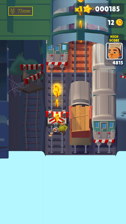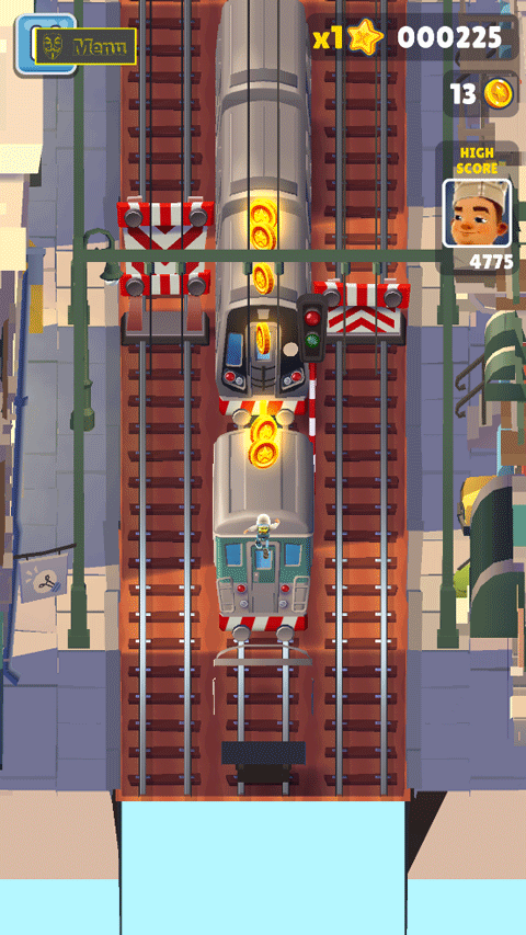 地铁跑酷上帝视角版是热门休闲跑酷游戏《地铁跑酷》的修改版本,游戏中可以通过内置菜单调整游戏视角,实现“上帝视角”跑酷。游戏中通过划屏控制方向,和所有跑酷游戏类似,玩家左右划屏控制游戏角色左右移动,上划跳跃,下划翻滚,比较有意思的是主角在空中的时候也可以左右控制方向。游戏非常考验玩家的手速和观察力,在遇到障碍前及时躲避,后方还有敌人追捕,因此每一个场景都要完美通过。玩家们在游戏中不仅要收集金币,扑面而来的火车也会让你累够呛,在这个过程中你可以使用道具,加速道具能够让你快速前进,使用滑板可以帮助你多出一条生命,点击屏幕两次可以使用道具。游戏里面还有很多不同的角色能够去选择,为游戏增加了更多的趣味性。如果你想体验不同视角的地铁跑酷,不妨试试这款地铁跑酷上帝视角版,绝对能带给你不一样的游戏体验,感兴趣的朋友快在本站下载体验吧!