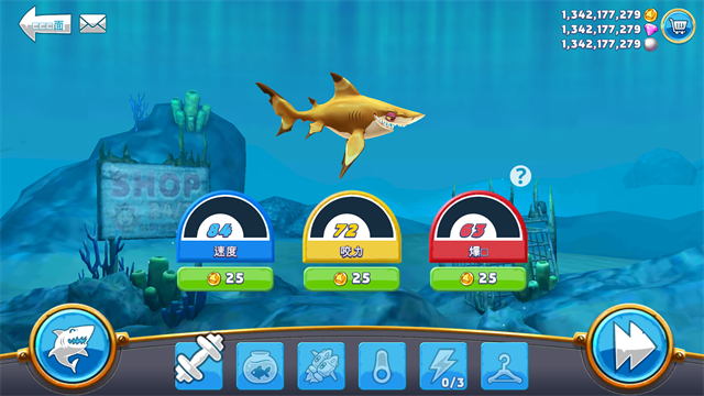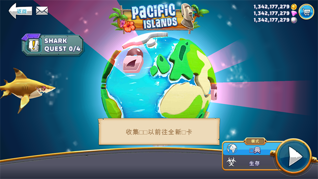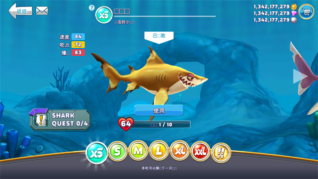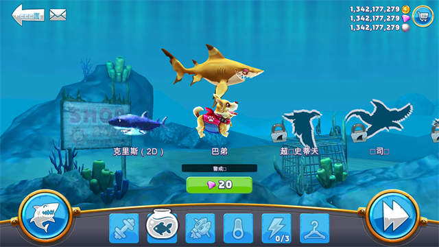 1、可以收集各有8种不同大小的20类鲨鱼品种,扮演敏捷的双髻鲨,甚至到著名的大白鲨!
