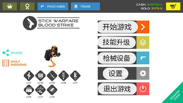 火柴人战争鲜血打击游戏提供了超过150种独特武器、超过36种独特且有用的技能等元素可供大家自由选择和使用,武器装备还是很丰富的,有超过150种独特武器,自动手枪,机枪,冲锋枪,突击步枪,DMR,轻机枪,Shot弹枪,,以及现在的手榴弹、火箭发射器等,在战斗过程中,你还可以捡起被射杀的敌人的武器跟他们战斗。