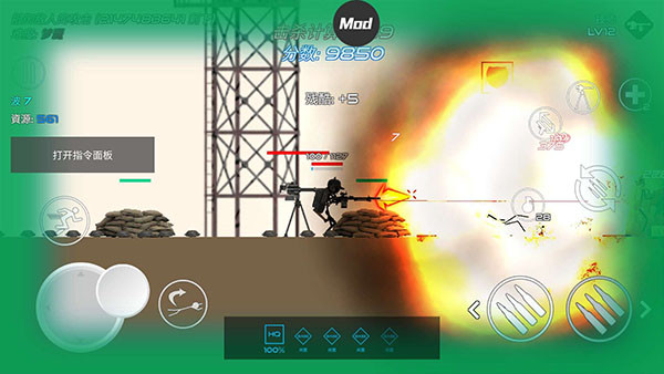 游戏中的按键设计非常经典,在屏幕的左边是控制人物左右移动,连续点击两下还会进行扑越躲避子弹,并且射击方向是固定的,需要你不断的移动才能快速的打击到敌人,无法自由转换,点左边就朝左边打,点右边就朝右边打,非常的有意思。