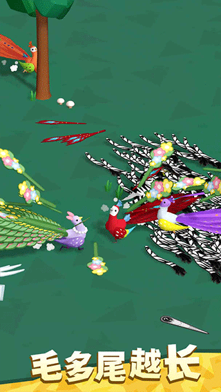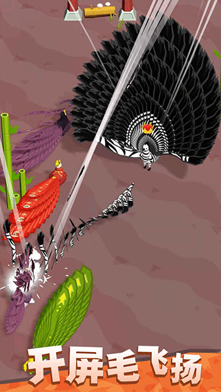孔雀拔毛大赛是全新的一款多人大乱斗玩法类手游,顾名思义,从游戏名字就应该知道这款游戏的玩法了,在游戏中你将指挥一只孔雀参加拔毛大赛,一开始的时候,孔雀尾巴是没有毛的,需要捡起地上掉落的毛自动插在自己尾巴上,也可以选择直接去拔其它孔雀的毛,当羽毛足够多时就可以选择发大招将一大堆毛像剑雨一样扔出去,远距离打败对手,场面非常壮观!当对手一毛不拔时,他排名就垫底了,感兴趣的朋友快来下载体验吧,祝你在拔毛大赛中获得好成绩!