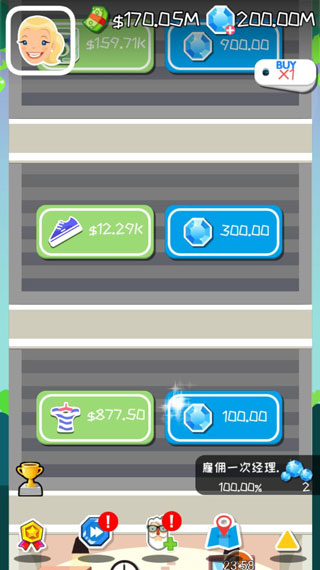 疯狂赚钱是一款休闲的挂机经营类游戏,游戏中玩家将由最初的书店开始经营,通过在营业期间的点击赚钱操作方式来积累更多的资产,期间你也可以雇佣管理人,管理人的作用可以帮助玩家自动进行手机活动,由此可降低玩家的操作点击频率,再而你还可以向着更多的经营类型发展,如餐厅、画室、珠宝店等,疯狂感受该游戏的赚钱方式,体会别样的经营乐趣。此外,疯狂赚钱还有丰富的经营区域,各大世界各国的经营项目会呈现在该游戏的当中,前往不同国家继续发展你的产业,可令你收获更多成就感,而且该游戏所设立的里程碑功能,会将你全部的经营成就记录下来,并且还能收获不错的奖励哦,喜欢的朋友就抓紧时间下载体验吧!