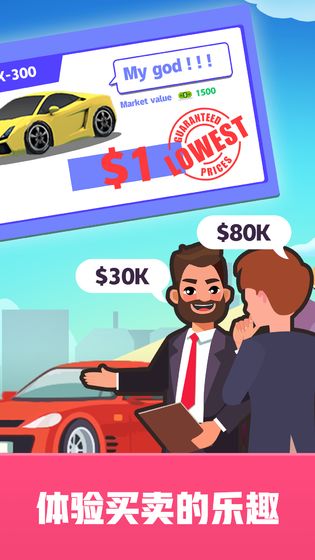 同时在二手车大亨游戏中,关于玩家的具体操作只要在积累一定的资金后进行全方位的升级即可,简单易上手,无论何时何地都能进行你的二手车交易,扩建不同区域,可以增加产品的丰富性,如皮卡区、轿车区、SUV区、跑车区、超跑区等等,另外你还可以在此周边建造产业,通过追加副业,让您的二手车产业更加完美,并且这些周边产业每隔一段时间都会为你提供一笔不菲的资金,记得领取哦~