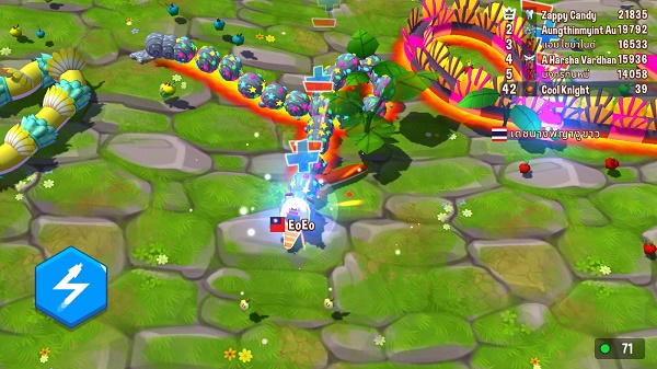 在这里玩家不仅要吞食地图上的食物,还要严防其他贪吃蛇的进攻,当贪吃蛇的头部碰撞到其他贪吃蛇的身体即会勋命。其次,地图周围的墙体、障碍物也会导致本场对决以失败告终,唯一的方式便是控制贪吃蛇躲避危险,并借助身体的强度,消灭场上其他对手。