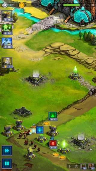 3、游戏中玩家将会体验到刺激的防御玩法,玩家将部署防御塔抵御敌人的进攻。