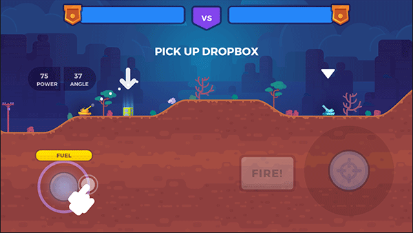1、进入Tank Stars官方正版游戏后,左下角的按键可以移动,空中会不时掉落空投,你可以移动到空投位置拾取;