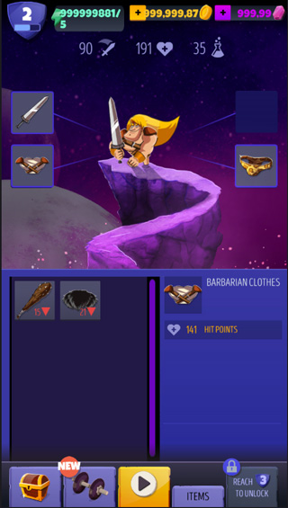 1、通过磨练自己的技能和刀片达到塔的顶部;